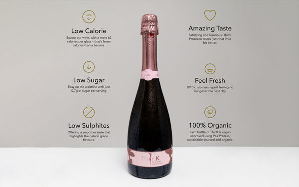 Sip and savor the deliciousness of ThinK prosecco, where we've carefully crafted a drink that's not only delightful but also healthier. Compared to your typical glass of prosecco, ours has an impressive 50% less sugar! So, you can enjoy every bubbly sip without worrying about excess sweetness. With ThinK prosecco, you get all the flavor and fun, but with a significant reduction in sugar.